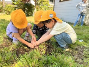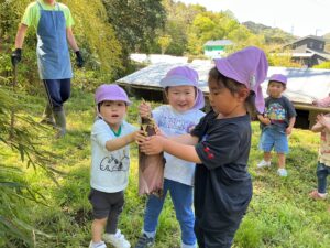 また、地域の方に掘り方を教えていただいたり、優しく声をかけていただく中で、子どもたちは安心して活動に取り組み、人との関わりの温かさにも触れることができました。自然の中での体験を通して、発見する楽しさや友だちと協力する大切さを感じる学びの機会となりました。