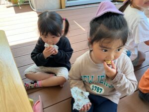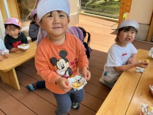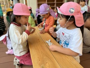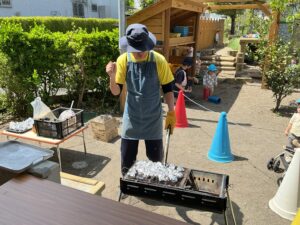 焼きあがったたけのこを一口食べると、「おいしい!」「いつもと違うね」と、素材そのものの味や、炭火ならではの香ばしさを感じている様子でした。自分たちで収穫したものを味わうという経験は、食への関心を深めたり、自然の恵みの大切さにも気付くきっかけになったように思います。