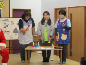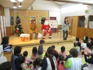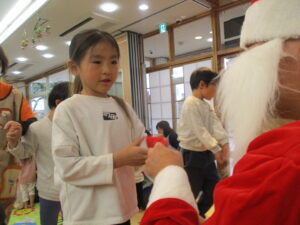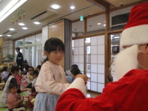 「サンタさんに会えるかな?」「クリスマスってワクワクするね!」と、朝から笑顔をたくさん見ることができました。